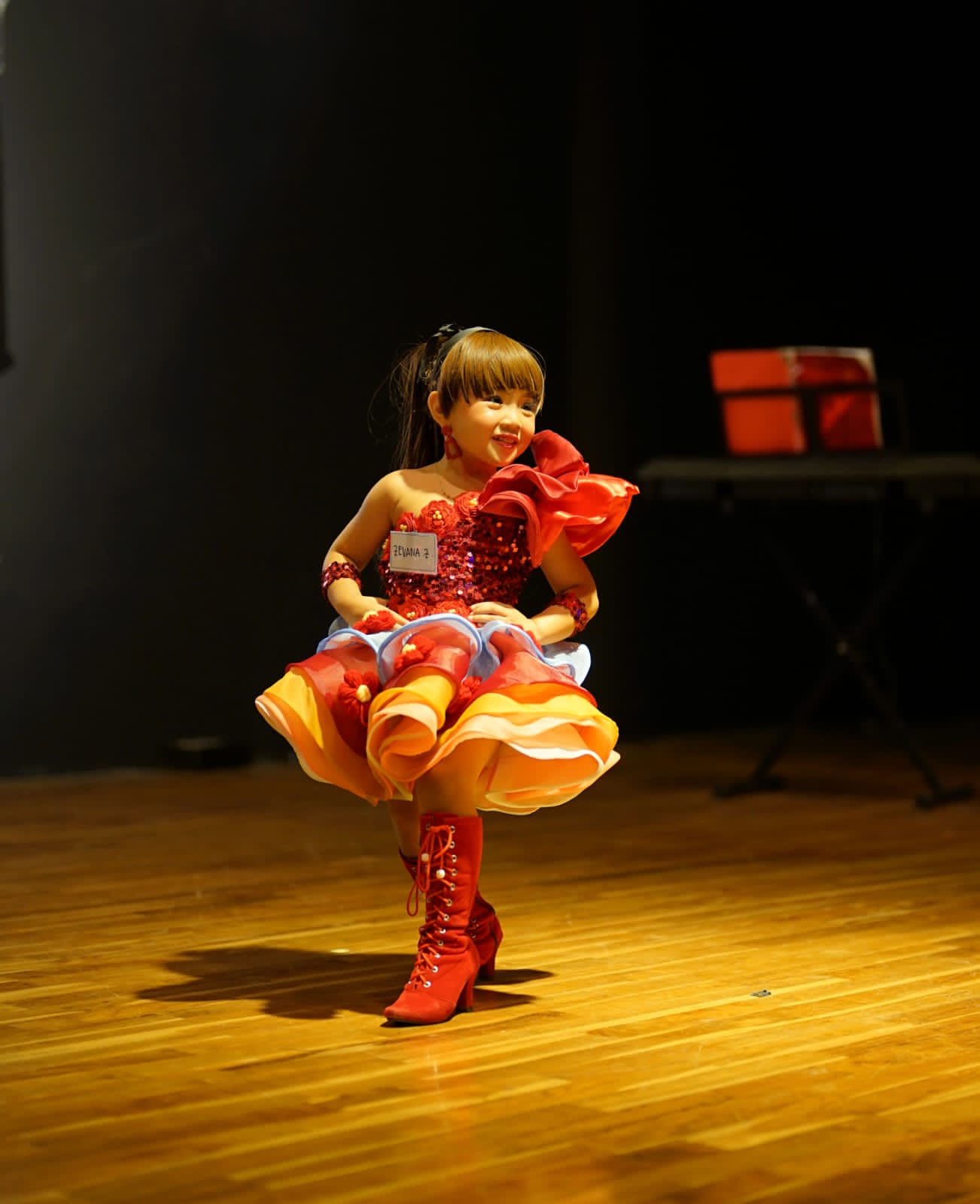 Anak usia 3 tahun tersebut sudah berani tampil dipanggung besar dan dengan lantang dia berkenalan dengan menggunakan pengeras suara my name is Zevanna zafira agung, umur saya 3 Tahun, saya dari Lampung. Dan diberikan tepuk tangan yang sangat meriah dari penonton.