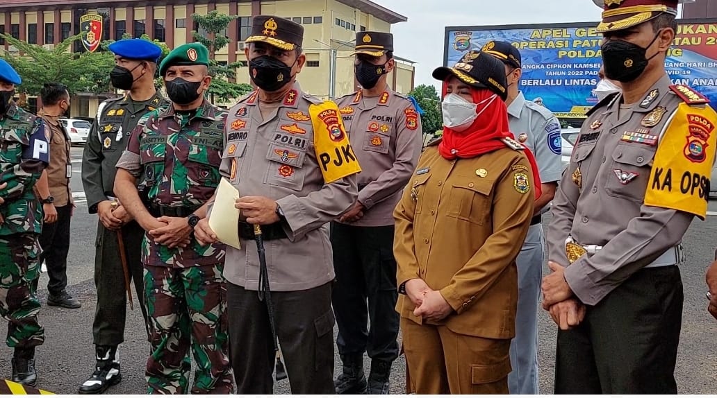 Bandar Lampung (sundalanews.com) – Walikota Bandar Lampung Hj. Eva Dwiana menghadiri apel gelar pasukan operasi ” patuh Krakatau 2022 ” yang digelar oleh Polda Lampung di Lapangan Apel Mapolda Baru Lampung, Senin (13/6/2022).
