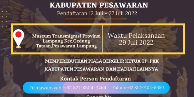 Pesawaran (sundalanews.com) – Dalam rangka HUT Kabupaten Pesawaran Karang Taruna Pesawaran bersama Dinas pendidikan dan kebudayaan akan menyelenggarakan Festival Ketipung Lampung 2022.