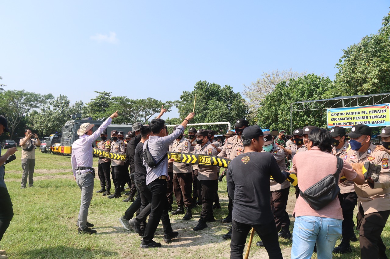 Pesisir Barat (sundalanews.com) – Dalam rangka mengantisipasi terjadinya kerusuhan pada saat pemilihan peratin (Pilratin) di wilayah kabupaten pesisir barat mendatang, Polres Lampung Barat menggelar simulasi pengamanan pil Peratin yang bertempat di Lapangan labuhan Jukung Kabupaten Pesisir Barat, Rabu (20/07/2022).