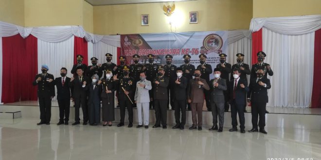 Pesawaran (sundalanews.com) – Polda Lampung Kapolres Pesawaran AKBP Pratomo Widodo, S.Ik., M.Si (Han) bersama Forkopimda Kabupaten Pesawaran mengikuti upacara peringatan Hari Bhayangkara Ke-76 tahun 2022 secara virtual di Aula Pamor Persada Polres Pesawaran, Selasa (05/07/22) Pukul 07.00 WIB.