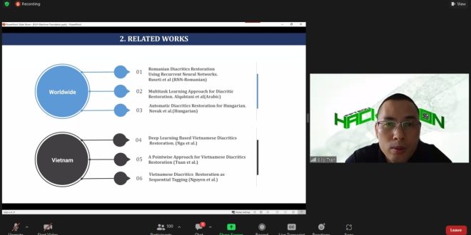 Untuk Vietnam, lanjut dia, telah melakukan proses perubahan dalam algoritma (deep learning) dalam tanda baca bahasa Vietnam. “Kami telah mengajukan metode untuk memproses kalimat dalam bahasa Vietnam tanpa garis nada intonasi menjadi kalimat normal berdasarkan Algoritma (dalam penelitian),” ungkapnya.