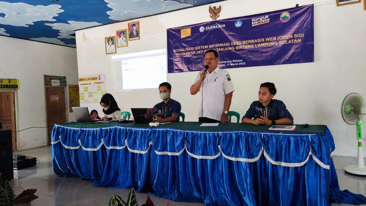LAMPUNG SELATAN (sundalanews.com) – Dosen Program Studi Desain Komunikasi Visual (Prodi DKV) Institut Informatika dan Bisnis (IIB) Darmajaya menggelar Sosialisasi Sistem Informasi Desa Berbasis Web (Open SID) pada Desa Jati Indah Tanjung Bintang Lampung Selatan.