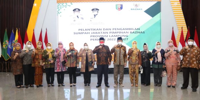 BANDARLAMPUNG (sundalanews.com) – Gubernur Lampung Arinal Djunaidi melantik dan mengambil Sumpah Jabatan Pimpinan Badan Amil Zakat Nasiona (Baznas) Provinsi Lampung Periode 2022-2027, di Mahan Agung, Bandar Lampung, Kamis (18/8/2022).
