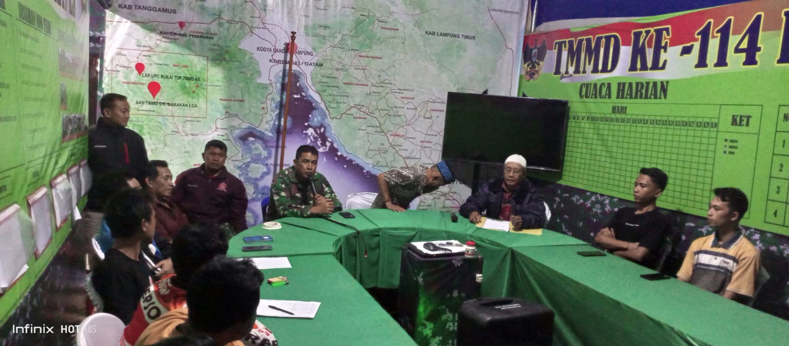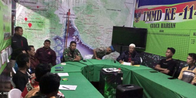 Rapat tersebut digelar di ruangan rapat Posko Satgas TMMD 114 Kodim 0421/Lamsel yang dihadiri oleh Kepala Desa Babakan Loa bersama Aparat Desa Babakan Loa serta Pengurus Karang Taruna Desa Babakan Loa,