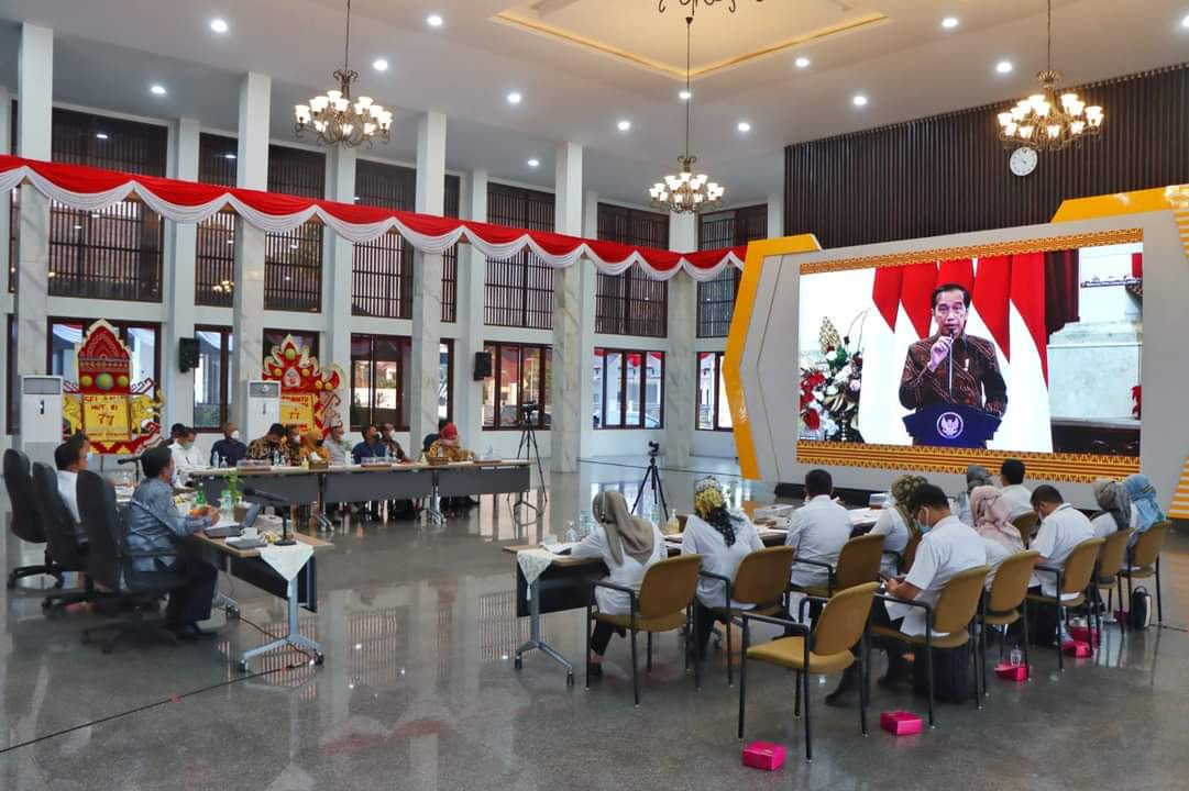 Presiden Jokowi selanjutnya meminta agar para bupati, wali kota, dan gubernur betul-betul mau bekerja sama dengan Tim TPID di daerah dan Tim Inflasi di pusat guna menyelesaikan permasalahan inflasi di daerah. (Dinas Kominfotik Provinsi Lampung).