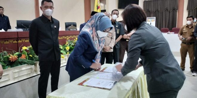 Rapat paripurna dipimpin oleh Wakil Ketua I Irwandi Sura laga,S.Ag, di dampingi Wakil Ketua II H.Tedi Kurniawan, S.E wakil ketua III Kurnain, S.Ip melakukan penandatanganan berita acara kesepakatan tersebut dari Gedung DPRD setempat.