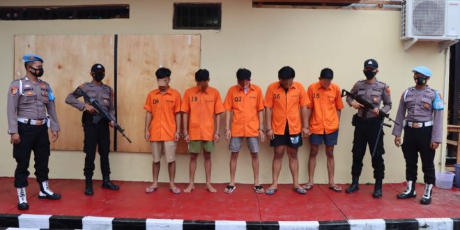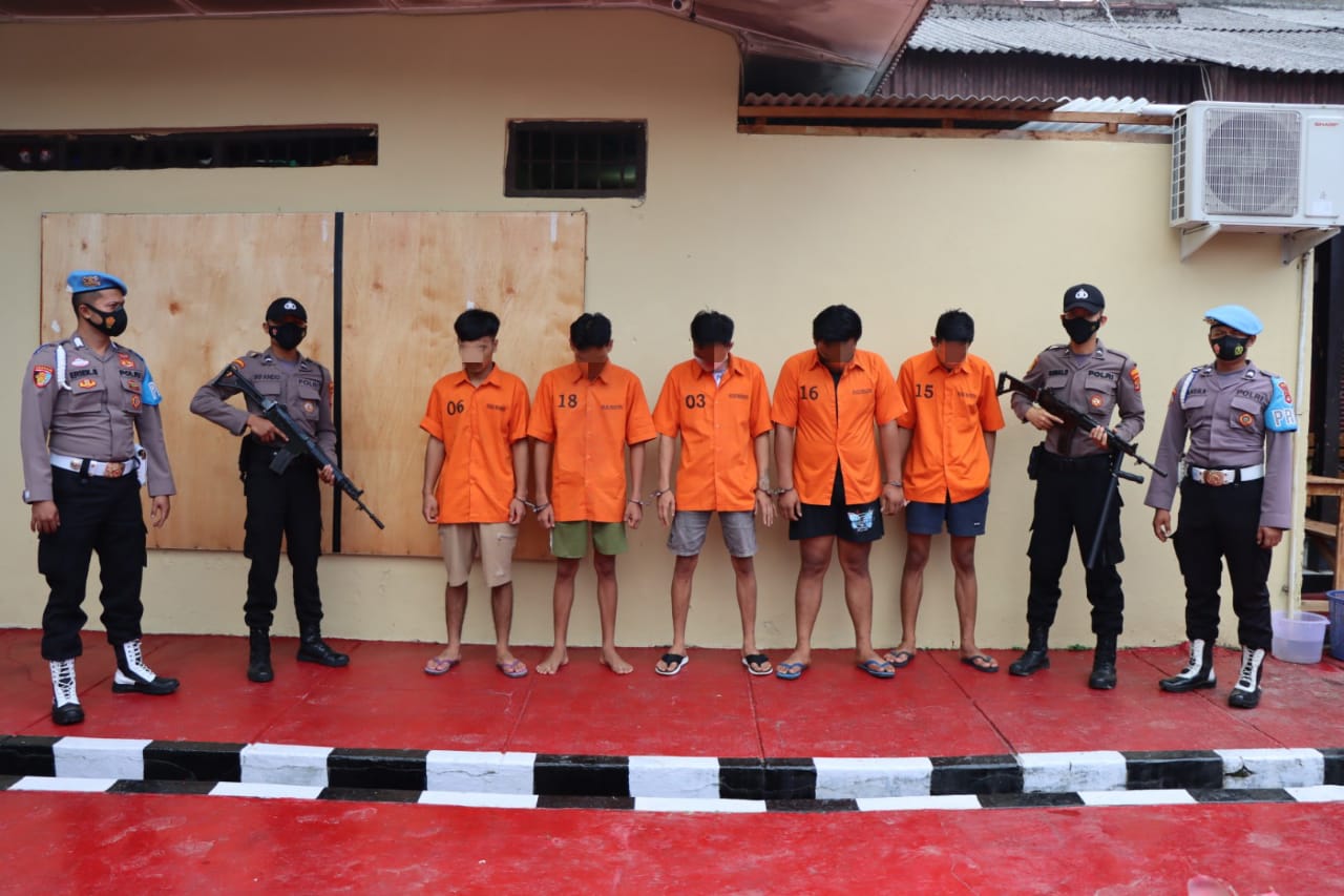 Kelima tersangka yang diamankan terdiri dari dari dua warga kabupaten Pringsewu berinisial SBA (27) dan MGR (21) sementara tiga tersangka lain merupakan warga Kabupaten Pesawaran berinisial ZZH (19), AR (17) dan BY (21).