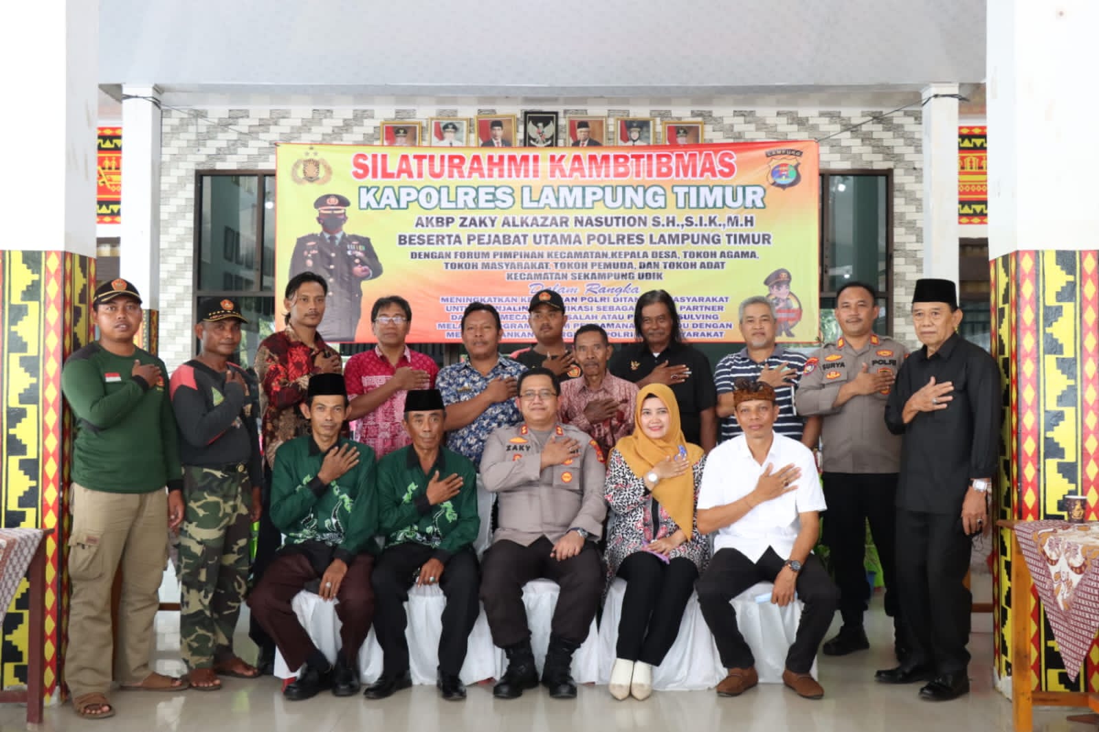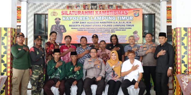 Lampung Timur (sundalanews.com) -Kapolres Lampung Timur Zaky Alkazar Nasution, bersama pejabat utama, silahturahmi kamtibmas di desa Gunung Pasir Jaya, Kecamatan Sekampung Udik, Lampung Timur, Sabtu (6/8/2022) siang.