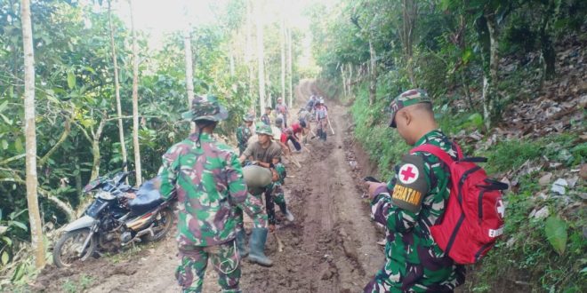 Anggota Satgas TMMD bekerja tampak penuh semangat karena didukung dan dibantu oleh warga setempat. Semangat gotong-royong pun semakin terasa antara warga dan TNI.
