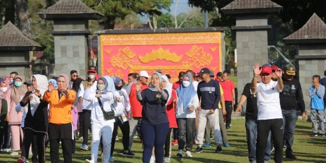 Lampung Barat (sundalanews.com) – Wakil Gubernur (Wagub) Chusnunia Chalim melakukan senam bersama Jajaran Pemerintah Kabupaten (Pemkab) Lampung Barat (Lambar) di halaman Kantor Bupati Lampung Barat, Selasa (23/8/ 2022).
