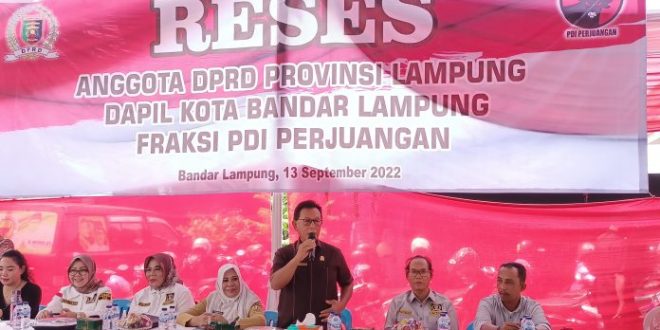 Bandar Lampung (sundalanews.com) – Empat anggota Dewan Perwakilan Rakyat Daerah (DPRD) Provinsi Lampung menggelar reses bersama program untuk menyerap aspirasi masyarakat. Dihadiri oleh anggota DPRD Provinsi Lampung yakni Ar. Suparno, Kostiana, Aprilliati dan Lenistan Nainggolan. Di Lapangan DPC PDI Perjuangan Kota Bandar Lampung, Selasa (13/09/2022).