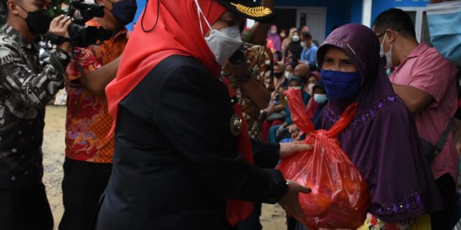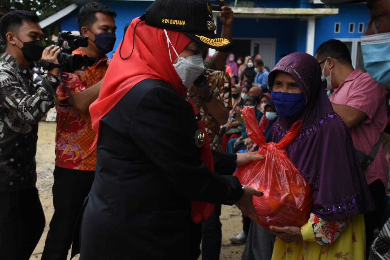 Bandar Lampung (sundalanews.com) – Walikota Bandarlampung, Eva Dwiana membagikan 200 paket sembako kepada masyarakat tidak mampu, di halaman kantor Kecamatan Kemiling, Kamis (8/9/2022).