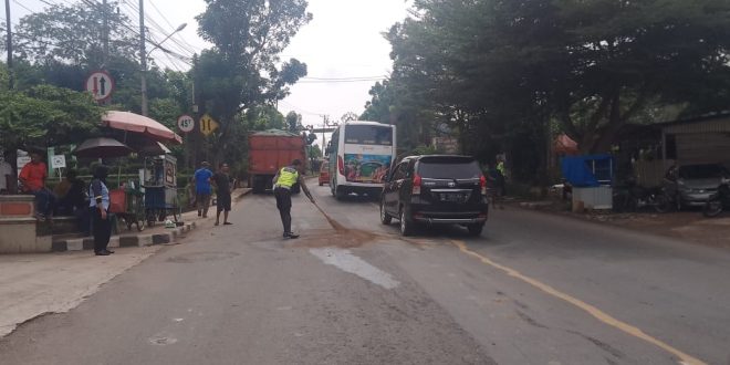 Kotabumi (sundalanews.com) – Guna mengatasipasi terjadi laka lantas personel Sat Lantas Polres Lampung Utara membersihkan oli yang tercecer di jalan Lintas Tengah Sumatera tepatnya depan Rumah Sakit CMC kelurahan Kelapa Tujuh, Rabu (19/10/2022), pukul 10.00 Wib.