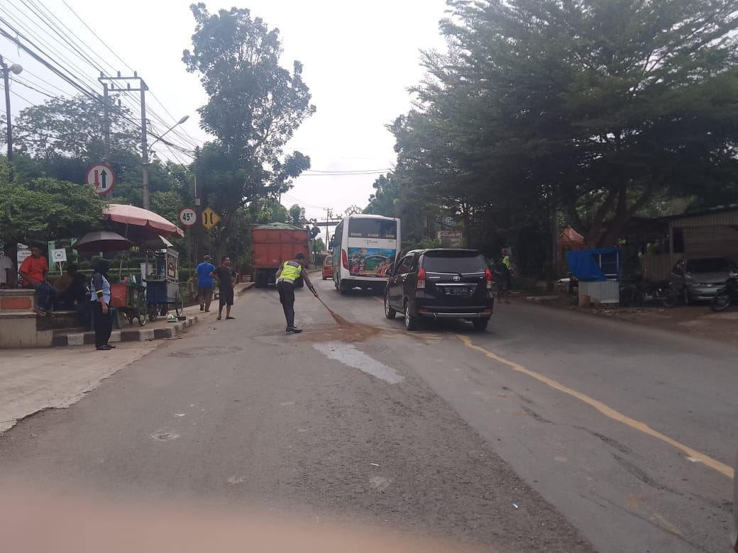 Dia juga menjelaskan adanya oli yang bercecer di jalan tersebut terjadi karena tanpa disengaja adanya salah satu kendaraan truk yang rusak tidak jauh dari lokasi tersebut hingga menimbulkan oli kendaraan tersebut bocor hingga berserakan ke badan jalan.