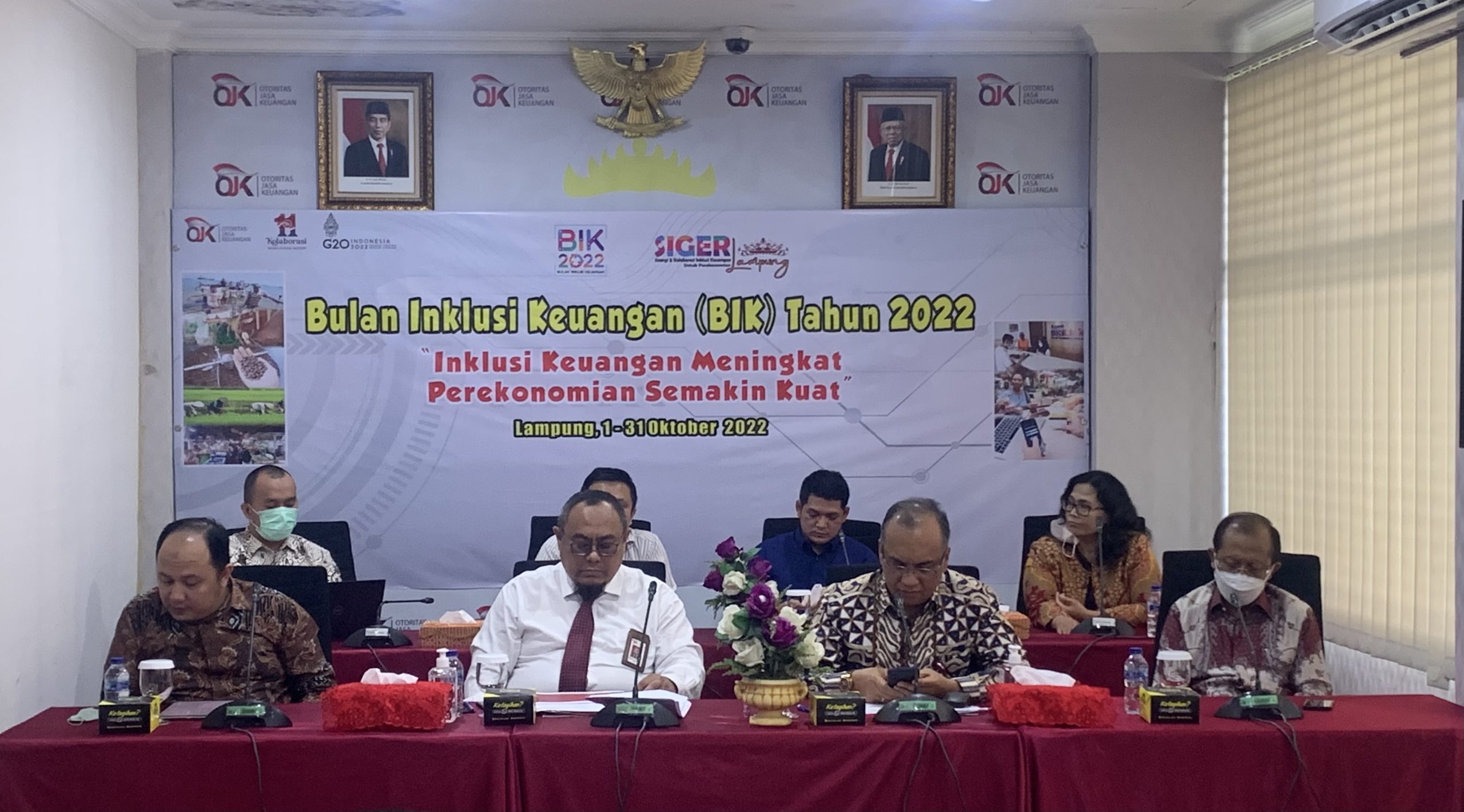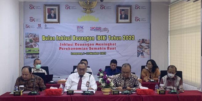 Bandar Lampung (Sundalanews.com) – Otoritas Jasa Keungan (OJK) Provinsi Lampung menggelar Bulan Inklusi Keuangan (BIK) tahun 2022, mengangkat tema “Inklusi Keuangan Meningkat Perekonomian Semakin Kuat” yang berlangsung mulai tanggal 1-31 Oktober 2022.