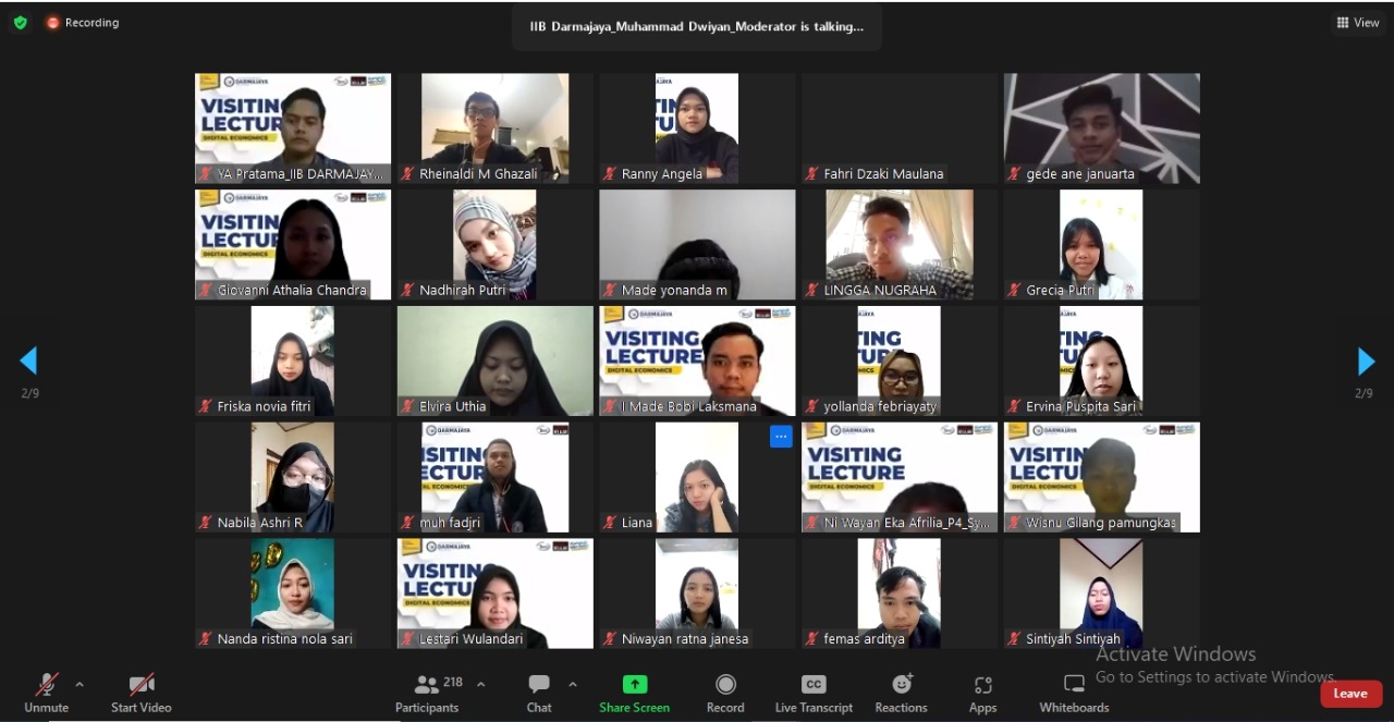 Dekan Fakultas Ekonomi dan Bisnis IIB Darmajaya, Aswin, S.E., M.M. mengatakan visiting lecture merupakan implementasi dari kerja sama antara kedua perguruan tinggi. “Era teknologi yang semakin berkembang saat ini memudahkan setiap individu dalam menerima pengetahuan dan wawasan dari belahan dunia melalui kecanggihan teknologi,” ungkapnya.
