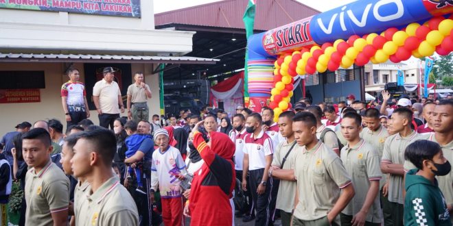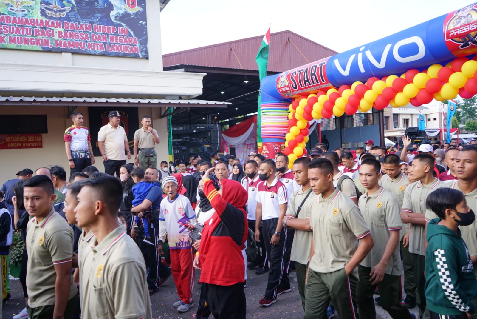 Jalan sehat di laksanakan di Mako Brimob Rawa Laut, Bandarlampung, Minggu tanggal 30 Oktober 2022.