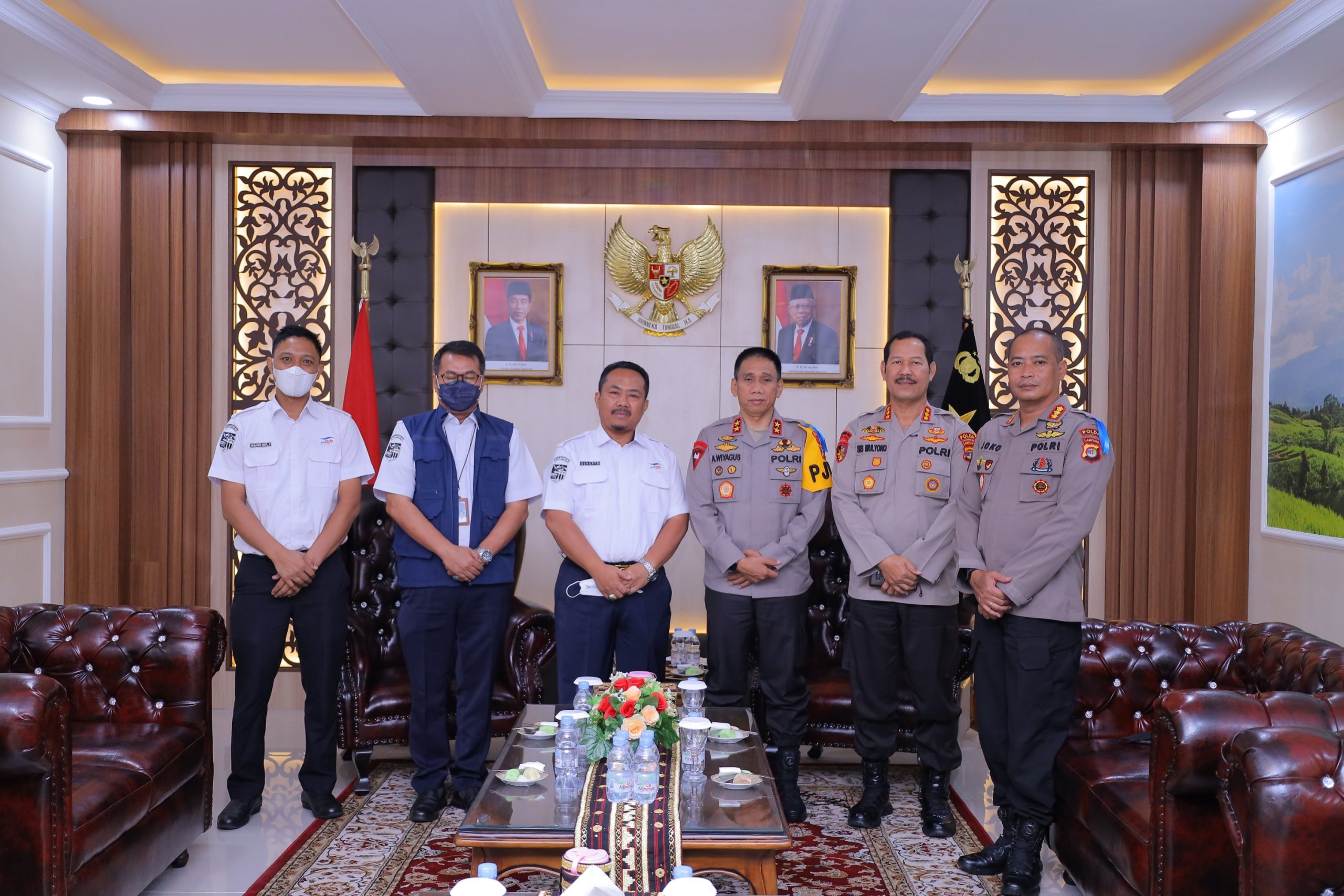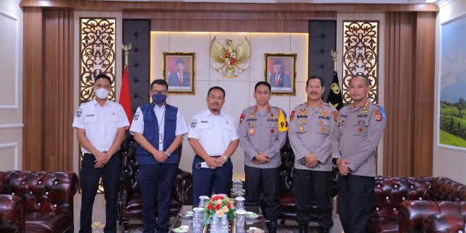 Bandar Lampung (sundalanews.com) – Kapolda Lampung Irjen Pol Akhmad Wiyagus Kapolda didampingi Direktur Polairud Polda Lampung Kombes Pol Sis Mulyono dan Direktur PAM Obvit Polda Lampung Kombes Pol Joko Bintoro menerima kunjungan dari General Manager ASDP Indonesia (persero) Cabang Bakuheni, Lampung Selatan di Mapolda Lampung, Selasa (4/10/22).