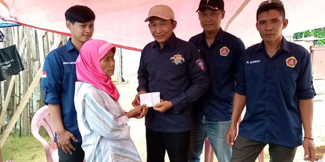 Pesawaran (sundalanews.com) – Karang Taruna Desa Tanjung Rejo Kecamatan Way Khilau berbagi di Desa Kedondong, dengan membagikan sembako kepada salah satu warga yang rumahnya roboh akibat bencana angin puting beliung.