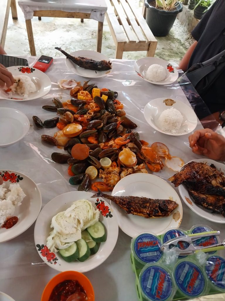Diri nya juga menambahkan,sebelum terjun kedunia kuliner,saya dulu pernah menjadi guru honorer di SD dan SMK untuk mencukupi kebutuhan ekonomi yang semakin tinggi saya fokuskan untuk membuka usaha kuliner Seafood ini,untuk bahan-bahan nya kami langsung membeli kepada petani,untuk kerang lautnya saja kami menghabiskan 10kg sampai 30kg itu 2 hari sampai 3 hari sudah habis,tutupnya