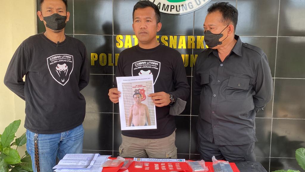 Kasat AKP Made Indra mewakili Kapolres Lampung Utara AKBP Kurniawan Ismail menjelaskan, kasus berawal dari penangkapan 2 orang pelaku narkoba ES dan J pada hari Rabu 12 Oktober 2022 pukul 22.00 wib di Tulung Mili Kecamatan Kotabumi dengan mengamankan barang bukti sabu 13,40 gram.