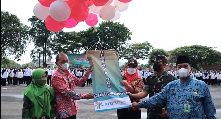 Bandar Lampung (sundalanews.com) – Walikota Bandar Lampung, Hj. Eva Dwiana memimpin Apel Siaga Registrasi Sosial Ekonomi (Regsosek) Tahun 2022 oleh BPS Bandar Lampung di Lapangan Korem 043 Garuda Hitam, Saburai Enggal, Jum’at (14/10/2022).
