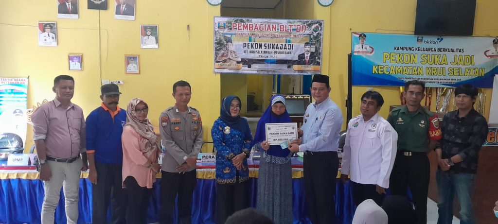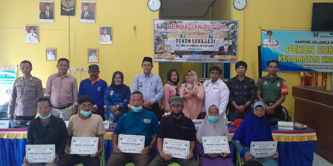 Pesisir Barat (sundalanews.com) – Pada hari Kamis 17 November 2022, Pemerintahan Pekon Sukajadi, Kecamatan Krui Selatan melakukan kegiatan penyerahan Bantuan lansung tunai dana desa (BLT- DD ) tahap 3, di Balai pekon. Pembagian BLT-DD ini untuk 3 bulan, yakni bulan Juli, Agustus dan September . Sebanyak 81 orang kelompok Penerima manpa’at (kpm) warga pekon sukajadi menerima lansung bantuan tersebut.