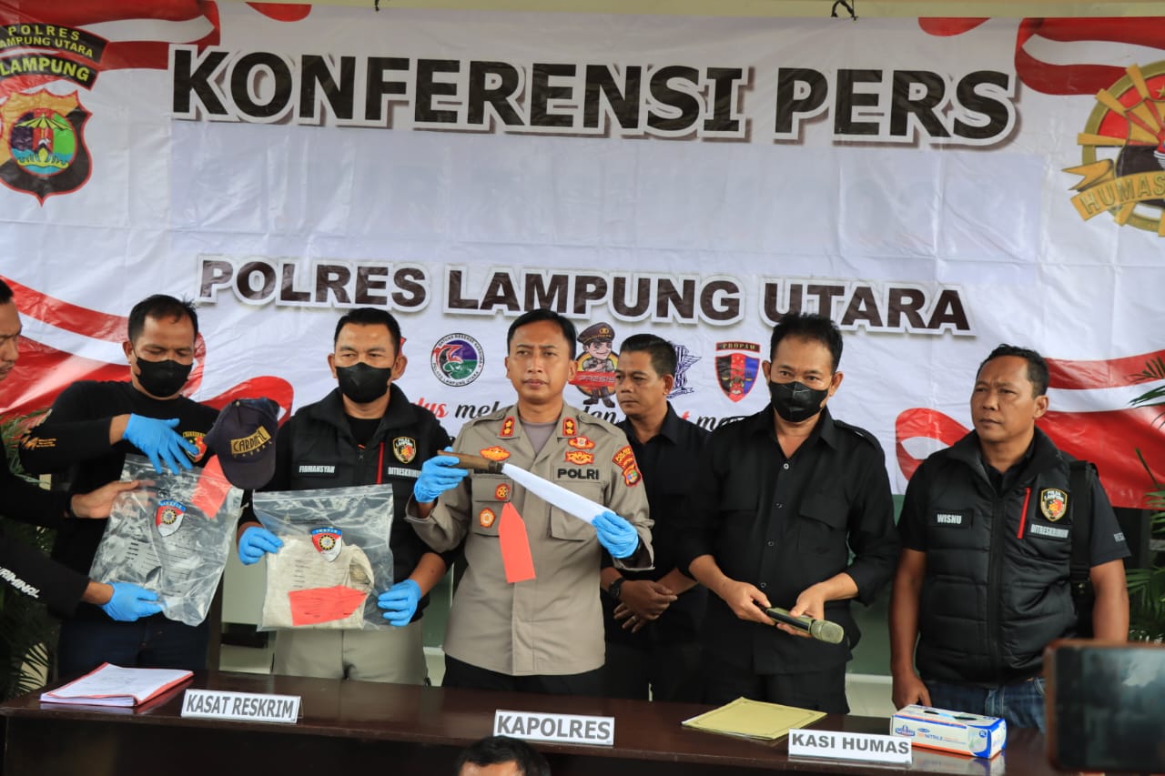Hal tersebut disampaikan Kapolres Lampung Utara AKBP Kurniawan Ismail SH.SIK.MIK., saat menggelar konferensi pers bertempat di koridor utama Mapolres setempat pada Rabu 16/11/2022.