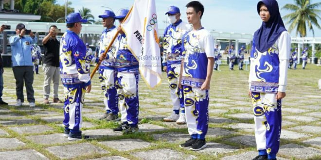 Pesisir Barat (sundalanews.com) – Wakil Bupati Pesisir Barat A. Zulqoini Syarif, S.H mengukuh dan melepaskan 109 Atlit Kontingen Pesisir Barat, yang akan bertanding pada 14 Cabang Olahraga (Cabor) di ajang Pekan Olahraga Provinsi (Porprov) Lampung ke-IX Tahun 2022. Pelepasan Kontingen berlangsung di halaman Kantor Pemkab Pesisir Barat, Rabu (30/11/2022).