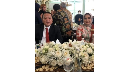 Gubernur Arinal yang mengenakan pakaian setelan jas hitam dengan dasi merah dan isri Riana Sari Arinal dengan kebaya tampak mengikuti prosesi acara Ngunduh Mantu, putra Presiden RI tersebut. Sementara Kaesang Pangarep dan Erina Gudono tampak gagah dan anggun dalam balutan pakaian adat Solo yang dikenakan.