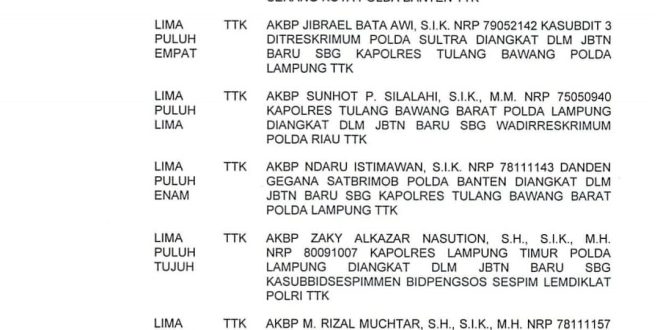 Surat yang bersifat kilat tersebut memuat Keputusan Kapolri nomor: Kep/ 1756/ XII/ 2022 tanggal 23/12/2022 tentang pemberhentian dari dan pengangkatan dalam jabatan di lingkungan Polri.