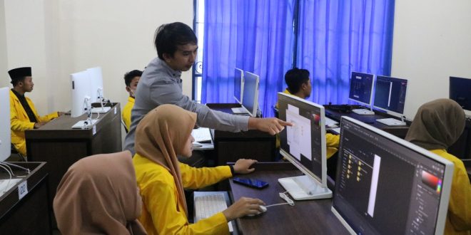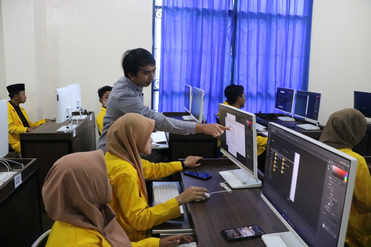 Kunjungan mahasiswa Pendidikan Guru Madrasah Ibtidaiyah (PGMI) dan Pendidikan Agama Islam (PAI) tersebut juga untuk belajar pengenalan tools desain grafis. Rombongan mahasiswa yang didampingi Ketua STIT Bustanul Ulum Dr. Dedi Andrianto, M.Pd., Wakil Ketua 1 Bidang Akademik STIT Bustanul Ulum Ari Arkanudin, M.S.I. dan beberapa dosen langsung menuju Laboratorium Dasar Lantai II Gedung Abdul Karim.