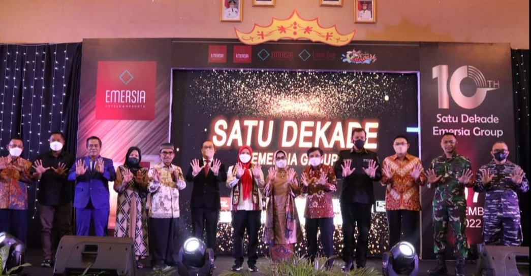 Bandar Lampung (sundalanews.com) – Walikota Bandar Lampung Hj. Eva Dwiana menghadiri acara 10 Tahun (1Dekade) Emersia Group di Ballraoom Emersia Hotel, Rabu (7/12/2022).