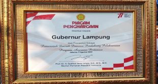 BANDARLAMPUNG (sundalanews.com) – Tepat di Hari Peringatan Kemerdekaan RI ke – 77, Gubernur Lampung Arinal Djunaidi menerima penghargaan dari Menteri Pertanian Syahrul Yasin Limpo karena telah mendukung pelaksanaan program Asuransi Pertanian. Penghargaan tersebut diterima Gubernur Lampung yang diwakili oleh Asisten Bidang Perekonomian dan Pembangungan Provinsi Lampung Kusnardi, di Lapangan Upacara …