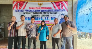 Bandar Lampung (Sundalanews.com) – Anggota DPRD Provinsi Lampung fraksi PDI Perjuangan, Kostiana SE.MH menggelar sosialisasi pembinaan ideologi pancasila dan wawasan kebangsaan bersama pemuda-pemudi dan masyarakat sekitar. “Bersama masyarakat khususnya generasi muda kita menggelar sosialisasi pembinaan ideologi pancasila dan wawasan kebangsaan, supaya dapat menanamkan nilai-nilai Pancasila untuk bekal menjaga keutuhan Negara …