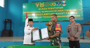 Pesisir Barat (sundalanews.com) – Pelaksanaan TNI Manunggal Membangun Desa (TMMD) ke 113 di Pekon Sukamaju kec.ngaras kab. Pesisir Barat, yang di buka pada tanggal (10 /5/2022) oleh wakil Bupati H.A Zulkoini Syarif, Hari ini resmi ditutup oleh Wakil Bupati di Gedung Serbaguna Guna (GSG) Selalau Labuhan Jukung. Kamis, (9/6/2022) Ada …