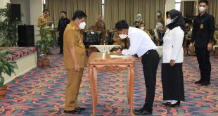 BANDARLAMPUNG (sundalanews.com) – Gubernur Lampung Arinal Djunaidi diwakili oleh Asisten Administrasi Umum Minhairin, melakukan Penyerahan Surat Keputusan (SK) dan Penandatanganan Secara Simbolis Surat Perjanjian Kerja Pegawai Pemerintah Dengan Perjanjian Kerja (PPPK) Guru Tahap I dan Tahap II di Lingkungan Pemerintah Provinsi Lampung Tahun Anggaran 2021, di Balai Keratun Lt.III, Bandar …