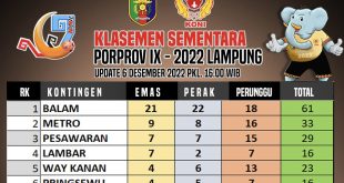Read More »Klasmen Sementara Porprov IX Lampung, Bandar Lampung Unggul Jauh
