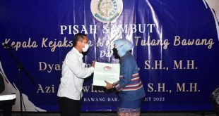 TUBABA (sundalanews.com) – Pemerintah Kabupaten (Pemkab) Tulang Bawang Barat (Tubaba) menggelar prosesi pisah sambut Kejaksaan Negeri (Kejari) Tulang Bawang dari Dyah Ambarwati, S.H., M.H. kepada pejabat baru Azi Tyawhardana, S.H., M.H. Acara pisah sambut itu berlangsung di Aula Rapat Hotel Brugo Cottage, Tiyuh Panaragan Jaya. Selasa malam (15/03/2022) Pada kesempatan …
