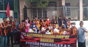 BANDAR LAMPUNG (Sundalanews.com) : Anggota Organisasi Masyarakat (Ormas) Pemuda Pancasila (PP) Kota Bandar Lampung, khususnya jajaran pengurus PAC Teluk Betung Utara dan ranting Kupang Kota, menggelar kegiatan Jumat berkah di Kelurahan Kupang Kota, Jumat (4/2/2022), tepatnya dikesiaman Ketua Ranting Kupang Kota, Hari Pulung. Kegiatan ini dilangsungkan diisi berbagi dengan anak …