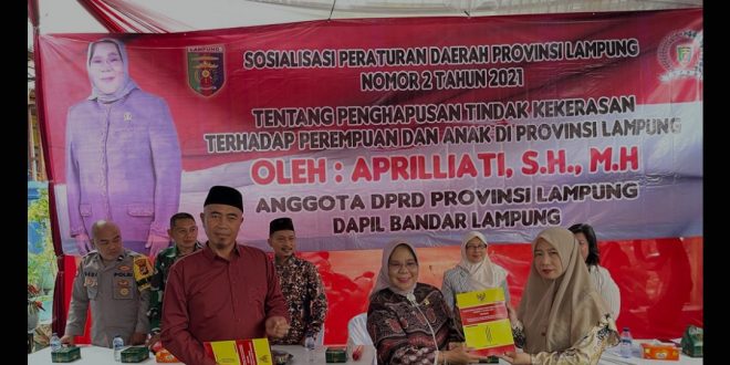 Bandar Lampung (sundalanews.com) – Anggota DPRD Provinsi Lampung, dari Fraksi PDI-P Apriliati S.H., M.H., kembali menggelar sosialisasi Peraturan Daerah nomor 2 Tahun 2021 tentang penghapusan tindak kekerasan terhadap perempuan dan anak, Minggu (29/1/2023).
