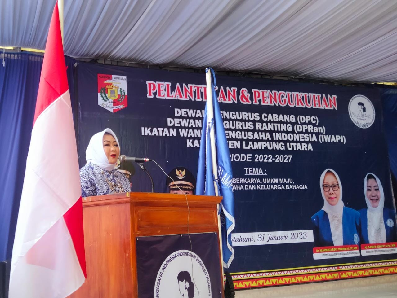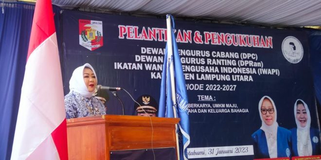 Lampung Utara (sundalanews.com) – Dewan Pengurus Cabang (DPC) Ikatan Wanita Pengusaha Indonesia (IWAPI) Kabupaten Lampung Utara (Lampura) periode tahun 2022-2027 resmi dilantik. Selasa (31/1/2023).
