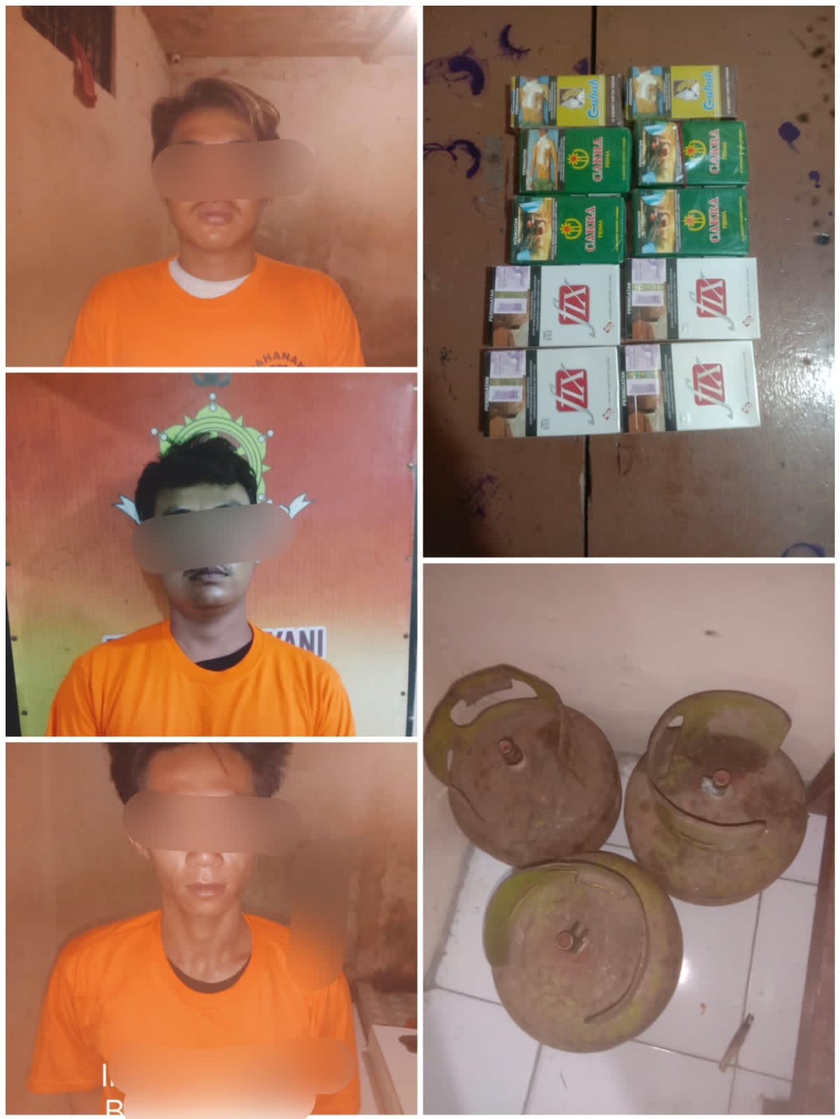 Kini dua terduga pelaku berhasil diamankan bersama seorang penadah berikut barang bukti yang ada berupa 3 tabung gas elpiji 3 kg dan 10 bungkus rokok dari berbagai merek.