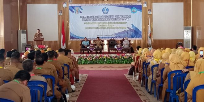 Waykanan (sundalanews.com) – Kepala Dinas Pendidikan Kabupaten Way Kanan Machiavelly Herman Tarmizi, S.STP, membuka kegiatan (BK) Bimbingan Konseling tingkat SD dan SMP bertempat di Gedung Serba Guna (GSG), Selasa (28/02/2023).