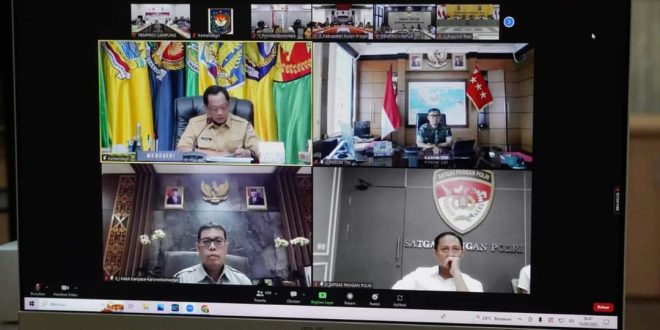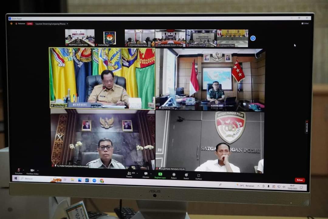 Bandar Lampung (sundalanews.com) – Pemerintah Provinsi Lampung diwakili oleh Asisten Perekonomian & Pembangunan, Kusnardi, mengikuti Rapat Koordinasi Pengendalian Inflasi Daerah yang dipimpin langsung oleh Menteri Dalam Negeri Tito Karnavian, secara daring, di Ruang Command Center Dinas Kominfotik Provinsi Lampung, Senin (13/2/23).