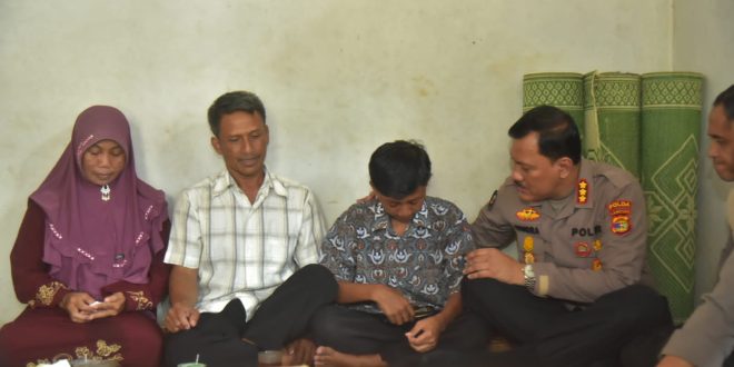 Kabid Humas Kombes.Pol Pandra atas nama Kapolda Lampung sekaligus memberikan tali-asih atau bantuan untuk keluarga korban yang diterima oleh orang tua ((alm) Hardi dan Parni.