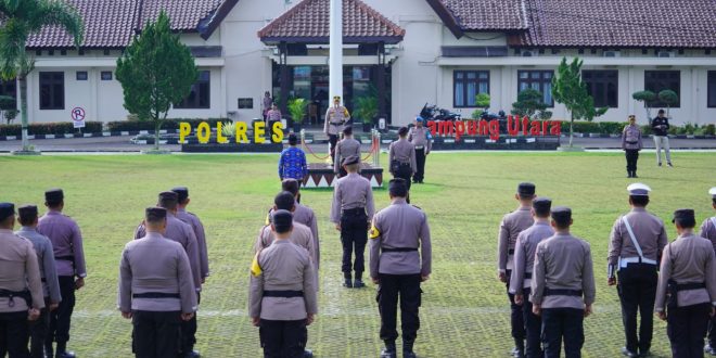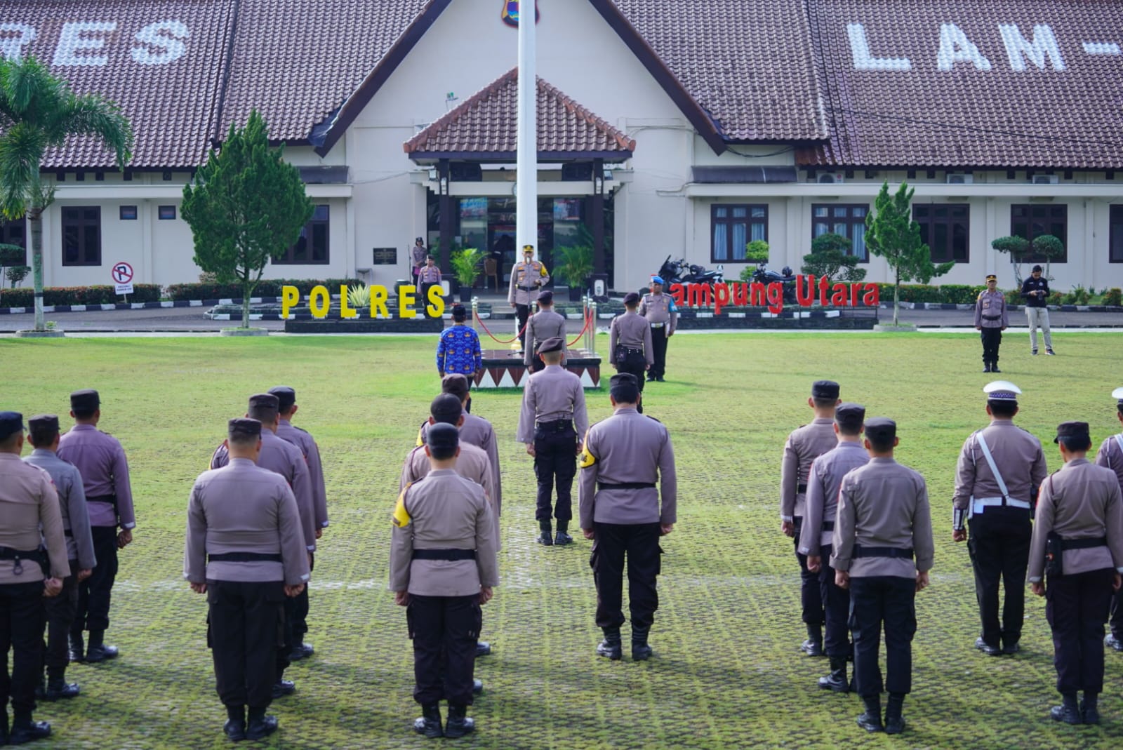 Peserta upacara terdiri dari para pejabat utama dan peleton personil Polres Lampung Utara beserta jajaran Bhabinkamtibmas.