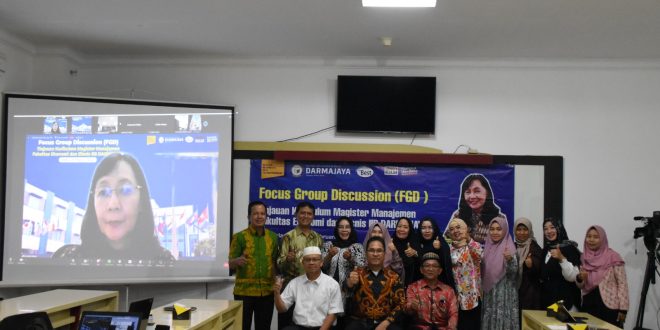 FGD menghadirkan pembicara melalui platform zoom Prof. Dr. Bernadette Robiani, M.Sc. Juga hadir stakeholder, alumni, dan dosen pascasarjana IIB Darmajaya secara luring di Aula Pascasarjana.
