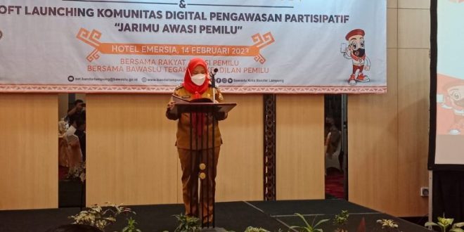 BANDAR LAMPUNG (sundalanews.com) – Walikota Bandar Lampung, Eva Dwiana menghadiri kegiatan Siaga Pengawasan satu tahun menuju pemilu 2024 oleh Badan Pengawas Pemilihan Umum (Bawaslu) Kota Bandar Lampung. Kegiatan itu berlangsung di Hotel Emersia Lampung, Selasa, (14/2/2023).